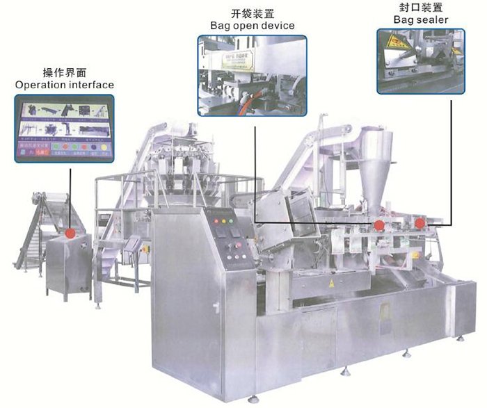 本機是我司引進歐洲同類機型先進技術,改良後(hòu)的新一(yī)代全自動卷膜成型包裝(zhuāng)機,集製袋、計量、灌裝、封口於一體。專門針對(duì)自立袋設計的全(quán)自動卷膜,製袋,灌裝,封口一(yī)體化機(jī)器。另外可以自動衝易撕邊,充(chōng)掛孔。配套不同的下料係統可以滿(mǎn)足粉(fěn)劑、顆粒、液劑(jì)等(děng)物料的(de)包裝要(yào)求。本機製袋、封口和充填是相對獨立的係統。通過機械聯動及(jí)可編程序控(kòng)製器(PLC)進行協調聯動,滿足不同袋子尺寸(cùn)的要求。