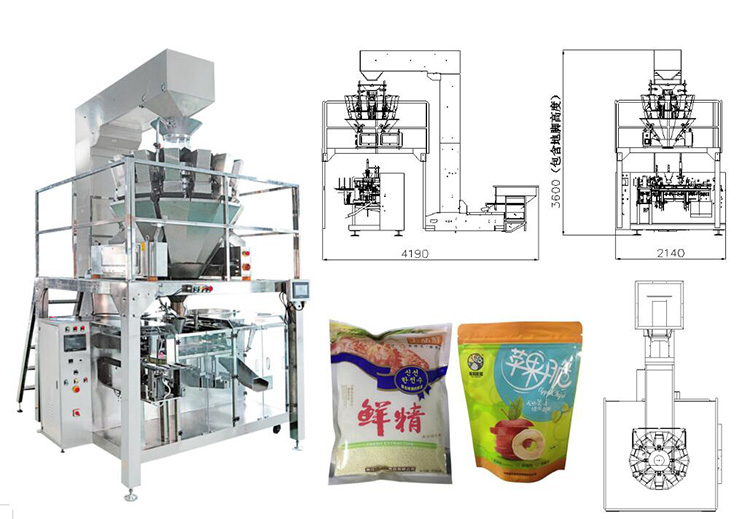 特點:1、放袋結構 2、送袋裝置 3、自動上(shàng)袋裝置(zhì)、 4、機械手夾袋 5、真空開袋 6、充填物料 7、整形 8、封口 9、成品輸送。
